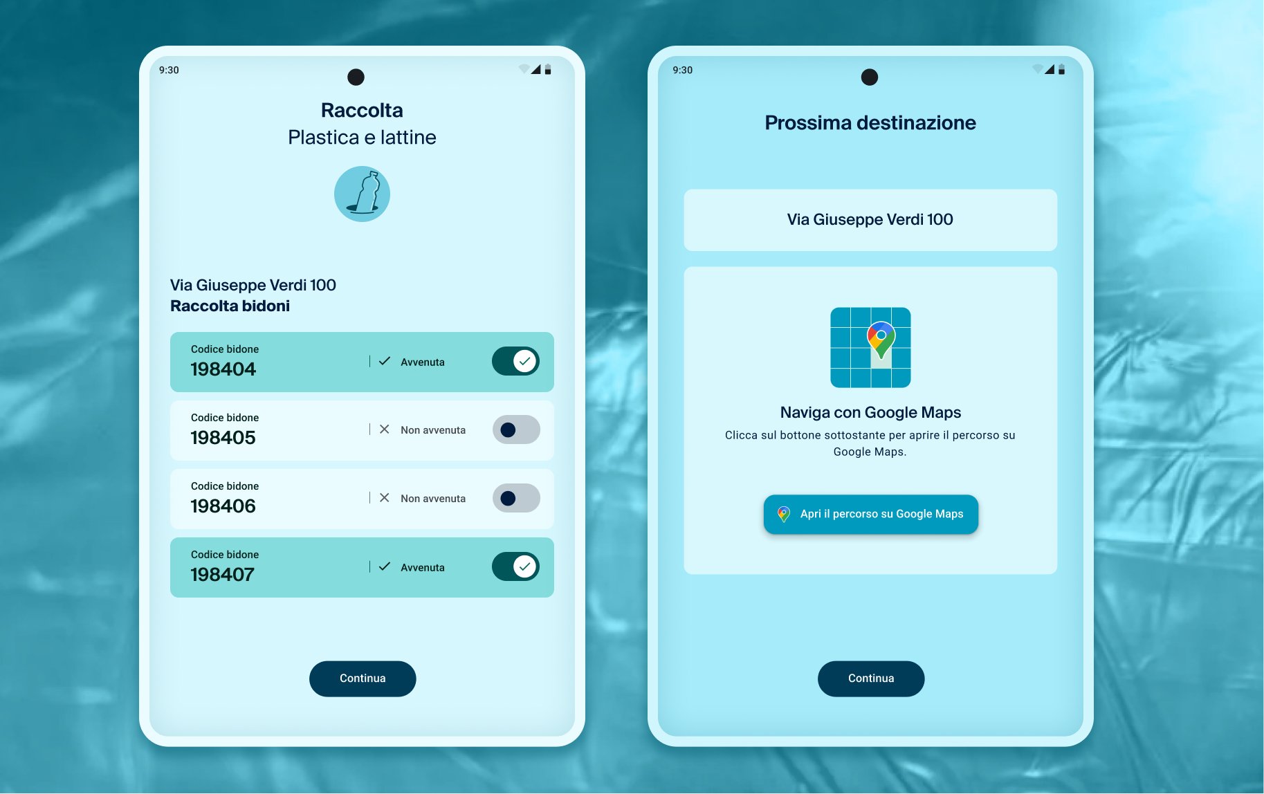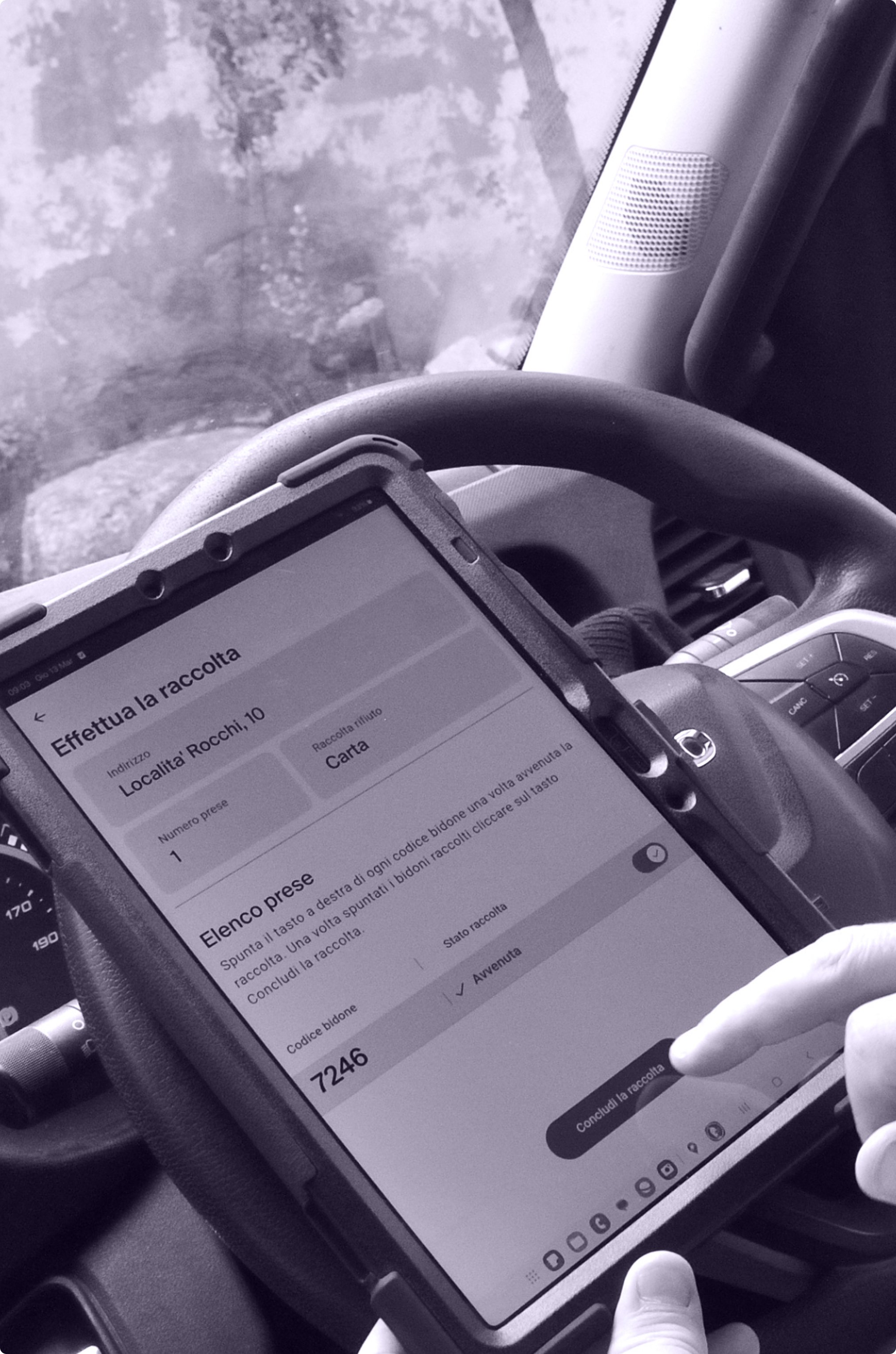 Per chi lavora sul territorio, abbiamo progettato un’app dedicata che accompagna l’operatore tappa dopo tappa, si integra con i navigatori e mostra chiaramente, per ogni fermata, quali bidoni raccogliere.