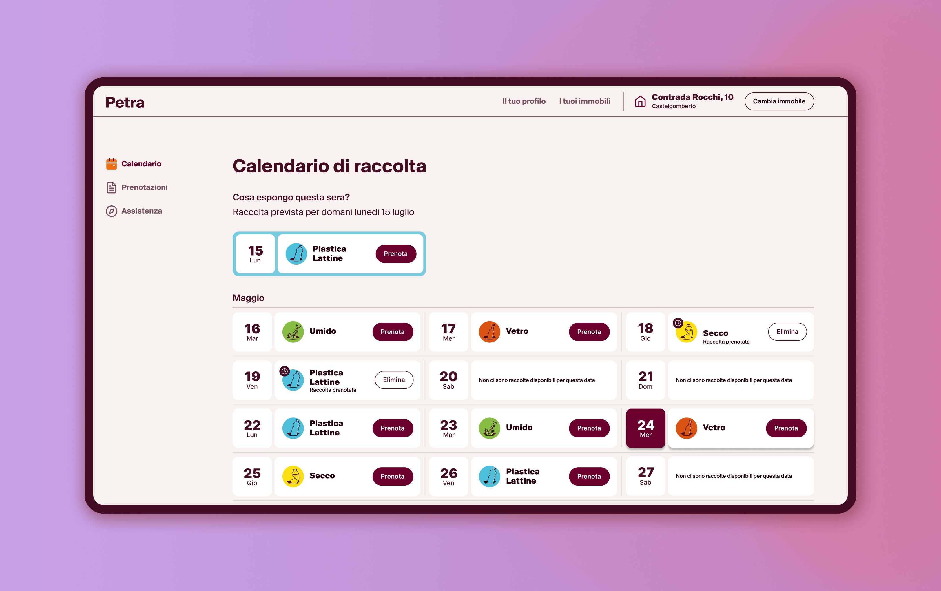 Petra nasce da un’idea chiara: superare la raccolta tradizionale e trasformarla in un servizio di ritiro on demand, capace di adattarsi alle reali necessità di raccolta del rifiuto.